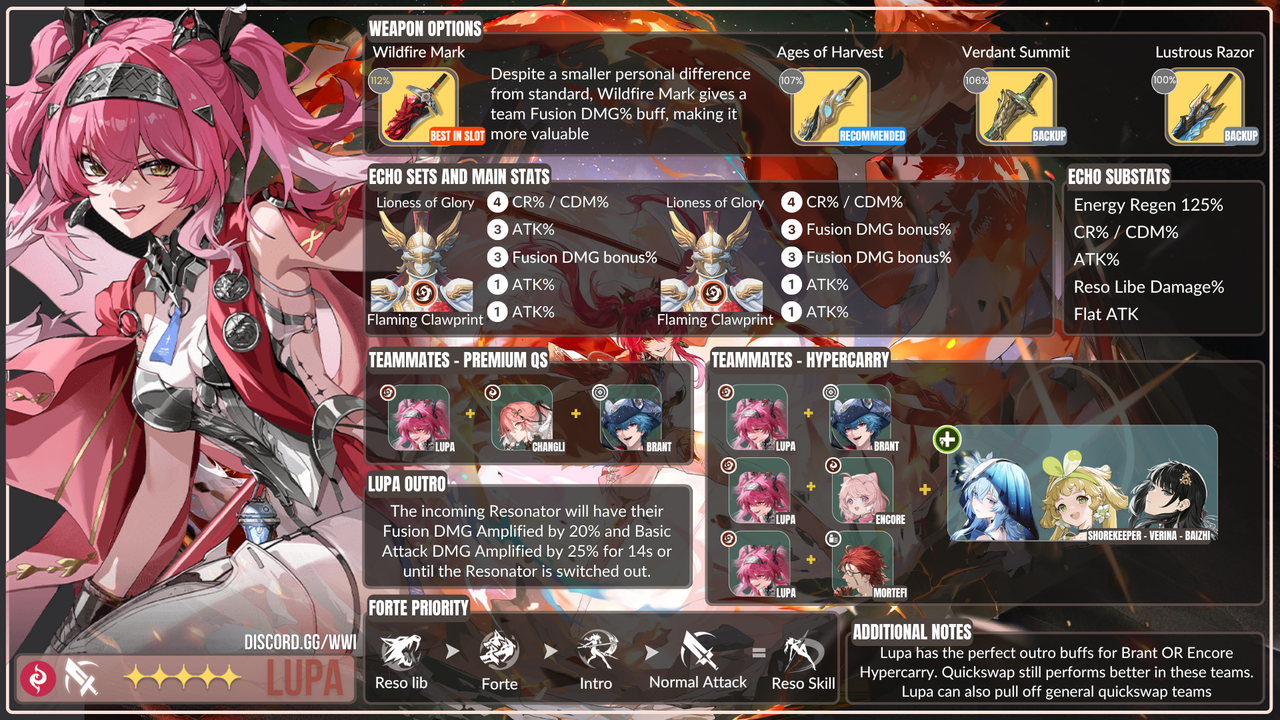 Dengan Base ATK tinggi, CRIT DMG, bonus Resonance Liberation DMG, serta buff DMG sebesar 24% untuk seluruh tim, Signature weapon milik Lupa secara jelas menjadi senjata terbaiknya tanpa tanding.