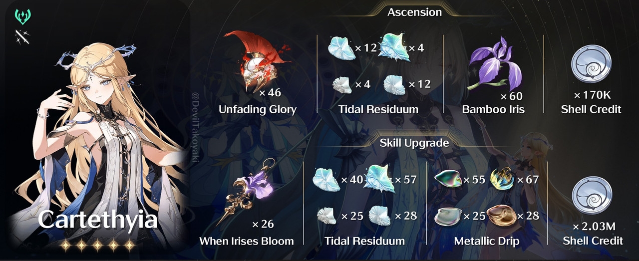 Multiplier DMG dari Basic Attack, Heavy Attack, Dodge Counter, dan Intro Skill milik Cartethyia meningkat sebesar 50%, dan Multiplier DMG dari Mid-air Attack meningkat sebesar 200%.