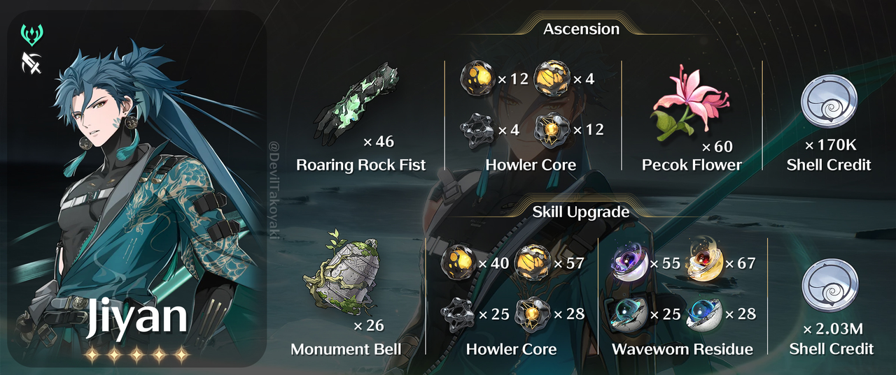 Meningkatkan ATK sebesar 10% dan Crit. Rate sebesar 8% untuk semua Resonator dalam tim selama 30 menit. Efek ini hanya berlaku untuk Resonator milik sendiri dalam Co-op Mode.