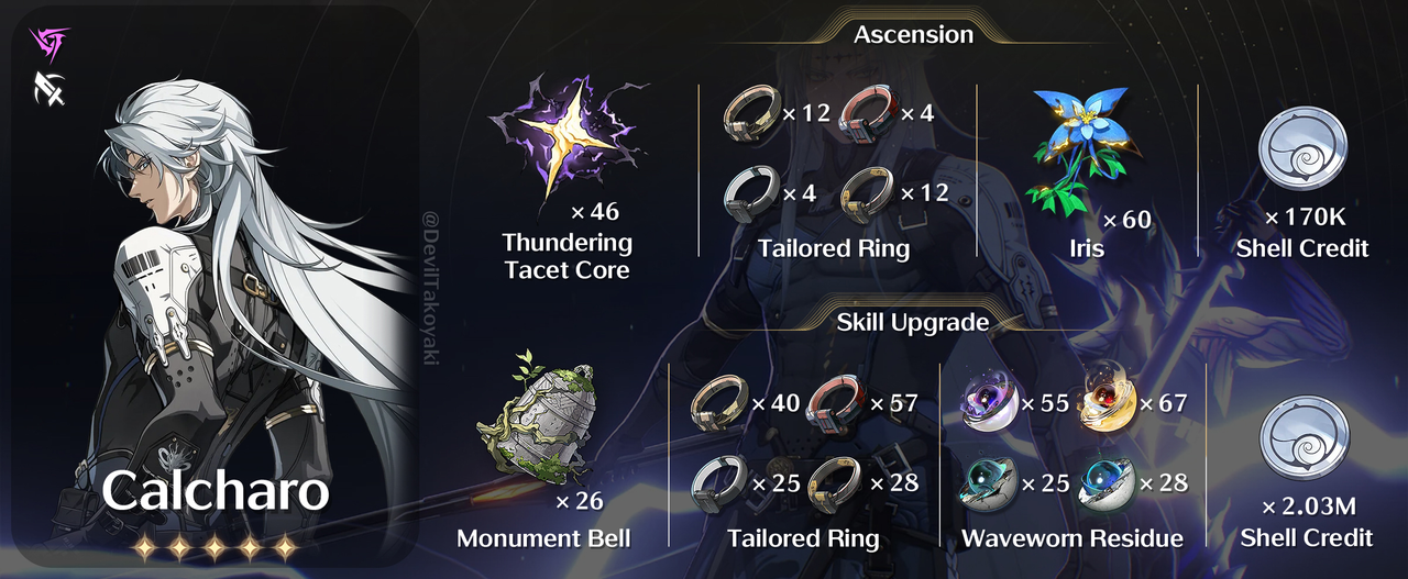 "Cruelty" Calcharo dapat menyimpan hingga 3 Cruelty. Saat berada dalam Resonance Liberation: Deathblade Gear state, Cruelty tidak dapat diperoleh. Saat Resonance Skill: Extermination Order mengenai target, Calcharo mendapatkan 1 Cruelty.