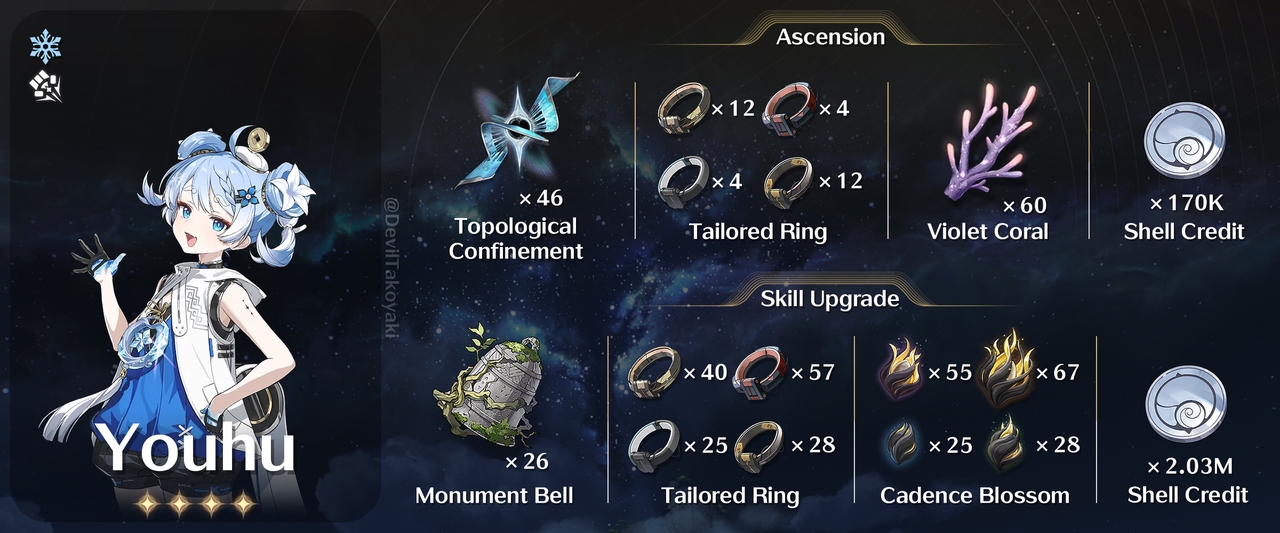 Meningkatkan ATK dan Crit. DMG semua Resonator dalam tim masing-masing sebesar 10% dan 16%, berlangsung selama 30 menit. Hanya efektif pada Resonator milik sendiri saat dalam Mode Co-op.