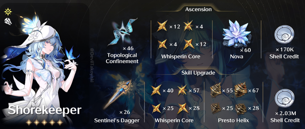 Shorekeeper muncul untuk memulihkan HP semua anggota party di sekitar dan memanggil 5 Dim Star Butterflies yang otomatis melacak serta menyerang target, memberikan
