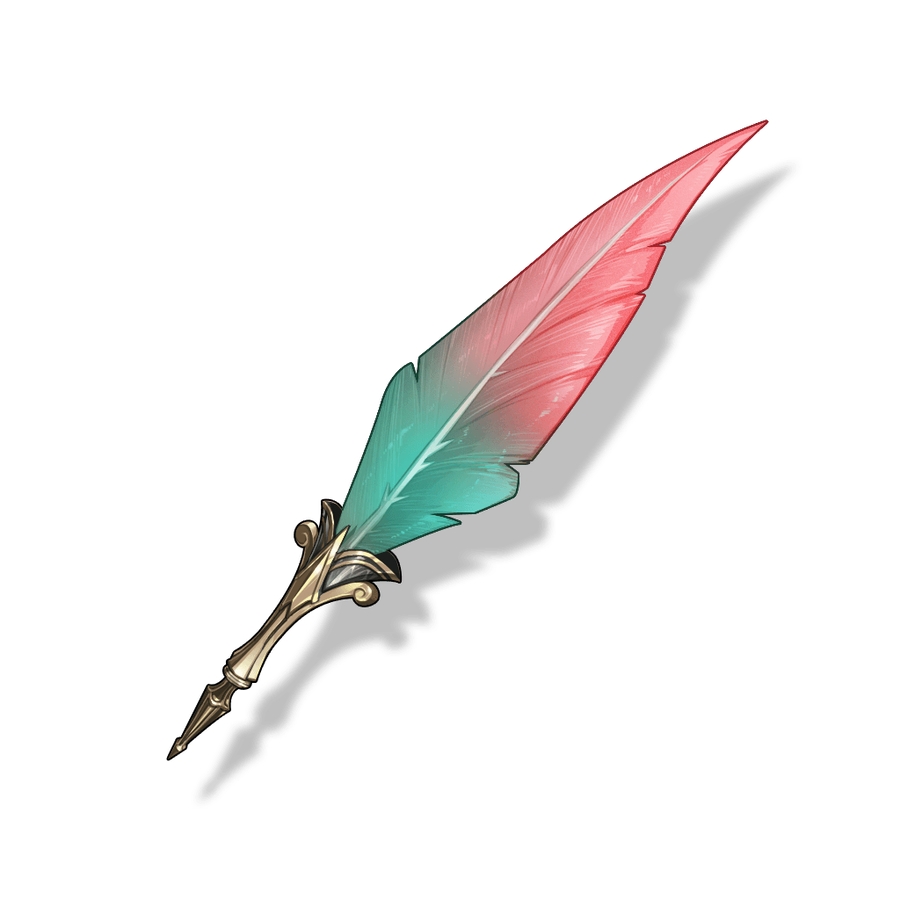 Sebuah pena mewah yang dirancang dengan sangat indah, berbicara lewat bulunya. Di tangan seorang penyair, pena ini memunculkan inspirasi tanpa akhir—menceritakan kisah-kisah meriah di kedai tentang gletser berusia ribuan tahun, reruntuhan megah kota bawah tanah, dan hutan-hutan ajaib.